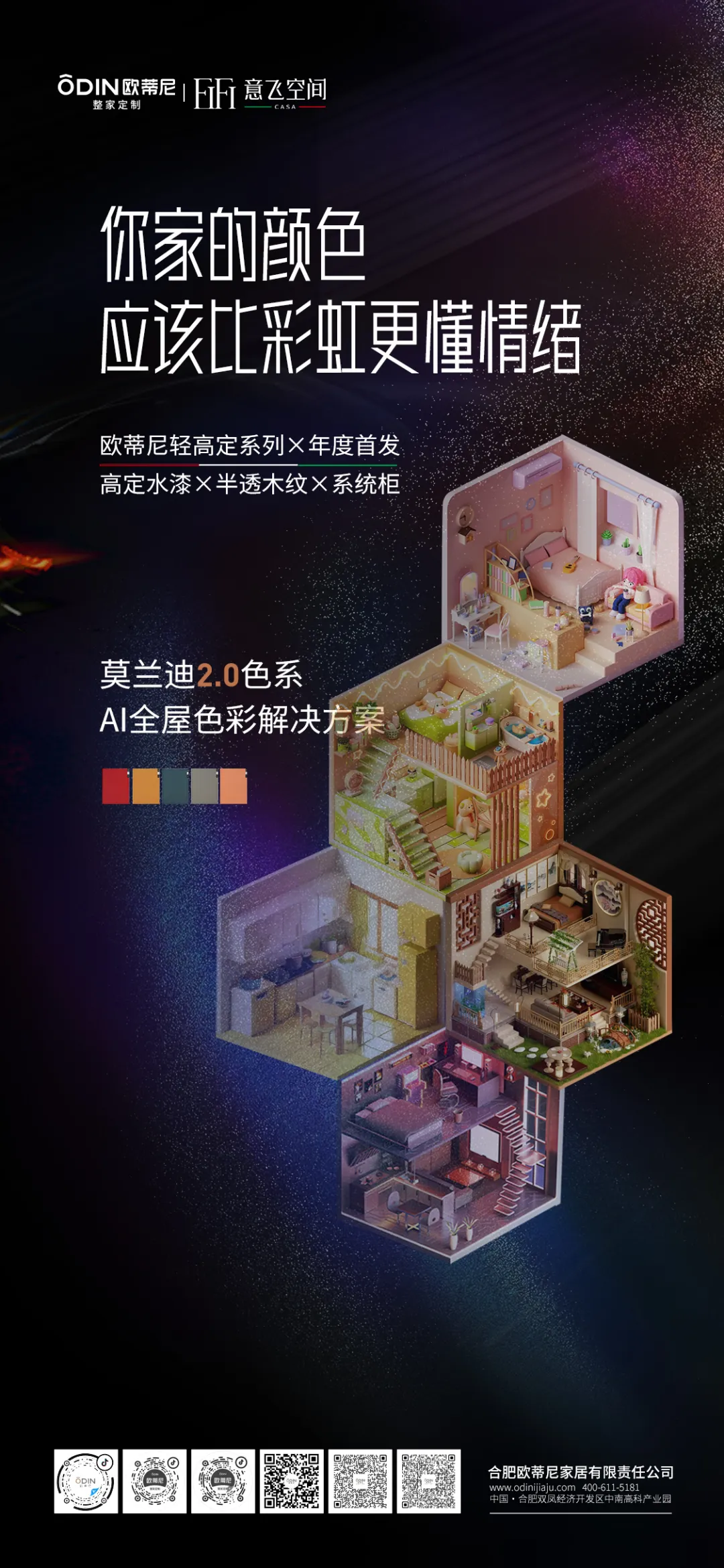 為了讓色彩搭配更加輕松,歐蒂尼還推出了AI全屋色彩解決方案。只需上傳戶型圖,AI算法便能迅速生成專屬配色方案,讓墻面、柜體、軟裝色彩無縫銜接,打造出既和諧又個(gè)性化的家居空間。在歐蒂尼的色彩哲學(xué)里,家不僅是一個(gè)居住的空間,更是一幅流動(dòng)的藝術(shù)畫卷。